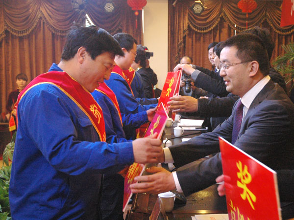 2013年3月16日上午,大地公司北会议室内座无虚席、掌声雷动,到处洋溢着喜庆祥和气氛,大地集团2012年度工作总结暨表彰大会隆重召开。副县长魏学君、县总工会主席郭鹏飞、集团领导、受表彰的先进工作者、优秀经销商、供应商及部分职工代表共700多人参加了会议。 会议由党委副书记王福文主持。会议首先由集团董事长张彪作工作报告。报告对2012年的工作进行了系统回顾总结,充分肯定了所取得的成绩,同时指出了工作中存在的不足和问题,分析了当前面临的形势和任务,并对今年的目标任务提出了明确的思路和要求。对做好2013年的工作,张董事长强调重点抓好7个方面的工作:一、坚持强管理、促销售、创高产、增效益、勇创新的指导方针。二、积极引进先进生产管理人才和技术人才,创造先进的管理模式,加强与先进企业的对标管理,促进生产制度和管理制度的创新,使经济技术指标达到或超过同行业的先进水平。三、坚持“至高品质、至诚服务”的宗旨不动摇,坚持走名牌销售战略,充分发挥大地水泥的品牌优势,鼓励培育专营经销商,并向2级、3级网点发展,牢固占领现有市场,努力拓展新市场。四、加快现有项目的建设进度,确保按计划竣工投产。五、继续坚持“人才是企业第一资源”的指导思想,根据企业发展需要,制订公司中长期人才供需规划,建立人才数据库,为企业快速发展提供人才保障。六、不断充实企业文化核心内容,将良好的企业文化渗入企业肌体,形成一个风气正、人心齐、奋发向上、包容和谐的良好氛围,为企业的快速发展提供动力和正能量。七、进一步绿化、美化厂区,做好厂区环境整治,打造环境最美的花园式企业。 会上,集团总裁崔泉发宣读了“关于表彰2012年度先进集体和先进个人及优秀经销商、供应商的决定”。对荣获劳动模范、技术能手、忠诚卫士、先进集体、先进工作者代表和优秀经销商、供应商代表进行了颁奖。先进单位代表、先进工作者代表、优秀经销商代表分别作了典型发言。 最后,魏学君副县长作了重要讲话。他说,大地集团已连续五年蝉联宝丰县纳税第一名,特别是2012年,在建材市场形势严峻的情况下,仍实现纳税达1.4亿元,连续两年成为我县纳税超亿元企业。县委、县政府将一如既往地高度关注大地集团的发展,努力为大地集团营造更加宽松、更加良好的经济发展环境,坚决做好大地集团发展的坚强后盾。希望大地集团抢抓机遇,创新科技,做大做强,为县域经济的发展作出新的更大的贡献。