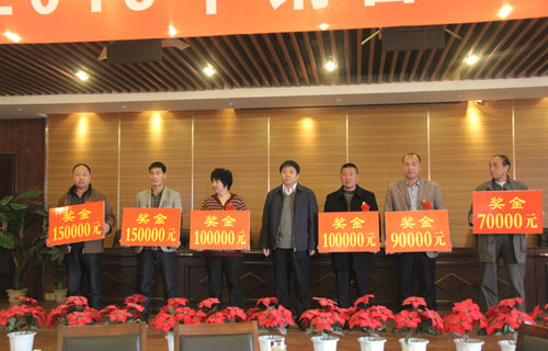 3月16日上午,万象城2013年销售工作总结暨表彰大会在大地公司北会议室胜利召开,来自安徽界首、河南驻马店、漯河、南阳等地的200多名经销商代表及集团领导、各分公司及有关单位负责人欢聚一堂,畅叙友谊,共谋发展。会议由集团党委副书记闫中安主持。 会议首先听取了集团副总裁、销售公司总经理陈志云所做的《2013年销售公司工作报告》,对一年来销售公司所做的主要工作进行了全面回顾,指出了目前存在的问题,并对2014年的销售工作作出安排部署。一、坚持以经销商为主的销售模式,发展优秀经销商,提升市场占有率。二、坚持以32.5级水泥为主、42.5级水泥为辅的销售定位。牢牢抓住农村市场,重点区域保持绝对占有,重点市场绝不退让。三、发挥产品多样化的优势。水泥、商品混凝土和粉煤灰的销售互为补充、互为支持。四、抓工程抓项目,掌握项目信息,提高工程项目的占有量。五、秉承“客户至上,诚信服务”的方针,牢固树立“把用户当亲人当朋友,用户都是自己人”的服务理念。 会上,崔泉发总裁宣读了《关于表彰2013年度优秀经销商的决定》。对荣获2013年度的优秀经销商进行了颁奖。 集团党委书记张怀平为荣获得30万元大奖的优秀经销商颁发奖牌和奖金。 接着,集团相关单位负责人、区域经理代表分别上台做表态发言,大家纷纷表示,要勇于创新,敢于出手,加大宣传力度,提高服务质量,为全面完成2014年的各项工作任务而努力奋斗! 宋春红、张云龙等优秀经销商代表相继上台作典型发言,与大家共同分享经验和成果。他们一致认为,大地水泥质量一流,服务到位,受到了广大用户的好评和认可。通过与大地的合作,切实得到了实惠,收获了丰厚的回报,期待与大地更长建立更长期广泛的合作关系。 最后,集团党委副书记闫中安作了总结讲话,他对销售公司一年来所取得的成绩表示肯定,并对2014年的工作提出了更高的要求。他希望销售公司要开阔思路,创新思维,按照“勇于创新、规范管理、发挥效能、全面提升”的指导思想,增强服务意识,提高服务质量,加大宣传力度,充分发挥大地水泥的质量和品牌优势,进一步开拓市场,努力培育优秀经销商和专营经销商。希望经销商朋友们加强与大地的合作,携手共进,互利共赢,共同打造大地集团的美好明天。 此次大会不仅是对销售工作的总结表彰会,更是一次2014年销售工作动员誓师大会,与会经销商纷纷表示,要以这次会议动力,珍惜荣誉,加倍努力,全力以赴完成2014年销售任务,报答大地集团领导对销售工作者的支持和厚爱。