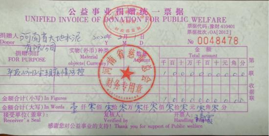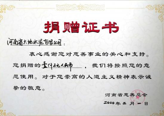 一场突如其来的新型冠状病毒感染的肺炎疫情,打乱了我们正常的生活节凑,新型冠状病毒感染的肺炎疫情还在全国火速蔓延,防疫防控进入关键决战时期,疫情就是命令,责任重于泰山。作为国家大型企业,河南省大地集团于2月1日向河南省慈善总会定向捐赠1000万元,用于平顶山市以及宝丰县的疫情防控工作。 随着新型冠状病毒感染的肺炎疫情蔓延,1月26日,河南省慈善总会紧急启动“防控疫情 共克时艰”慈善项目,同时开展线上线下公开募捐。齐心协力,防控疫情!万象城积极响应河南省慈善总会的募捐活动,并高度关注新型冠状病毒感染的肺炎疫情防控工作,全力支持配合疫情防控工作,主动捐助定向资金1000万元人民币。这笔捐款将支援平顶山市和宝丰县的疫情防控工作,用于采购短缺的医疗设备及物资,以及对一线医护人员生活工作条件的改善等,助力早日打赢这场没有硝烟的战役。 河南省大地水泥有限公司位于河南省宝丰县,属国家大型企业,组建于2006年5月,现有员工3000多人。近年来,万象城在张彪董事长带领下,全体干部职工团结一致,抢抓机遇,自我加压,坚持绿色发展、多元发展理念,不断壮大,目前已成为一家集建材、发电、酿酒、房地产、文化传媒、酒店、物流为一体的大型企业集团。先后荣获“全国消费者信得过诚信单位” 、“中国水泥熟料产能百强”、平顶山市“星级纳税企业”等30多项荣誉称号。连续12年荣获宝丰县企业纳税首位,2019年共计纳税2.8亿元。通过了质量、环境、职业健康、能源管理四体系认证。 该集团负责人表示:作为一家本土企业,我们深深的感到家乡的厚爱和哺育之情。以感恩之心回报社会是大地集团多年坚持的初心,无论是扶贫、助困还是社会公益,发挥企业应有的担当和社会责任是每个企业应有的义务。我们在做好大地集团疫情防控工作的同时,大力支援全市、全县疫情防控阻击战也是我们应有的担当。