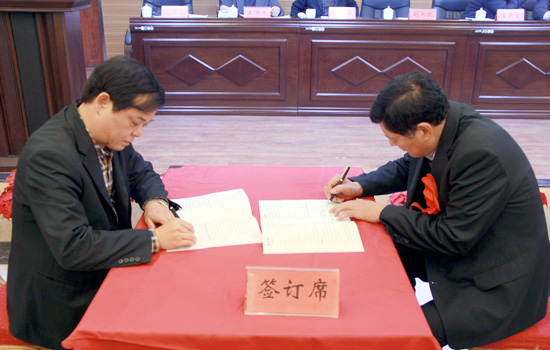 副总裁李保录与森佳公司经理杜占水签订2015年工作目标责任书