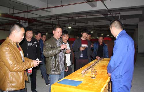 为加强对贾湖酒业的认知和了解,近日,集团分期分批组织大地员工去贾湖酒业参观交流,现场体验酿酒过程,品尝美酒佳酿,品味独特的贾湖酒文化,充分体现集团领导对广大员工的关爱之情。 3月22日,笔者也随团前往贾湖酒业,一路上,大家谈笑风生,好不快活,猜想着酒厂的种种情景,那种轻松和愉快是工作中体会不到的。经过一个多小时的颠簸,远远地看到一幢幢徽派风格的建筑,到了到了,车上早有人迫不及待了。一下车,贾湖酒业的同志热情地接待了我们,并带着大家到厂区参观,在传统酿酒车间,大家认真聆听了讲解员关于酿酒的工艺流程,有的员工好奇的抓起一把原料闻闻,有的端起刚蒸馏出锅的原酒尝尝,有的争相拿起手机拍照,录像。近万平方米的地下酒窖,现代化的酿造装备,存放近40年的木海老酒都引起了大家极大的兴致,“这酒闻着真甜,喝着真香,”不时听到有人一边品咂,一边夸赞。贾湖酒业深厚的文化氛围,热气腾腾的生产场面,工人们高昂的工作干劲都给大家留下了深刻的印象。 为了给大家提供贴心服务,贾湖酒业还为大家准备了丰盛的晚餐,并为每人备了一份暖心水果。绵柔甘甜的美酒让人回味无穷,如诗如画的美景令人赏心悦目,最后,大家带着依恋和不舍,踏上了返回的路。