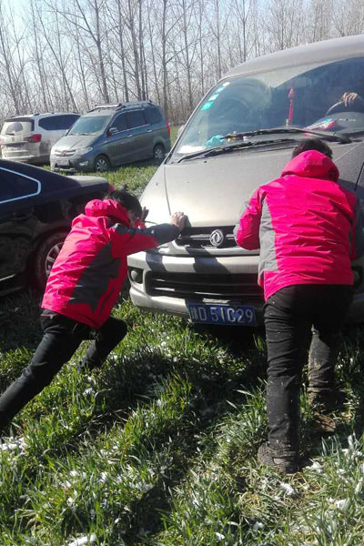 工作人员帮忙推车