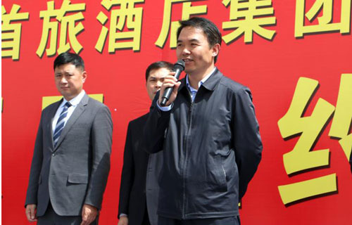 携手首旅,共铸辉煌!418日上午,首旅酒店集团、大地集团酒店合作签约暨项目开工仪式在位于县产业集聚区的项目所在地隆重举行,县委书记张庆一、县委副书记刘景华、县政协主席铁干卿、县产业集聚区管委会主任赵二成、县委常委、组织部长汤红漫、县委常委、县委办主任魏学君、副县长桓贯超、大地集团党委书记张怀平,大地集团总裁崔泉发出席仪式,首旅建国酒店管理有限公司首席执行官姜晓明及首旅建国分公司负责人到场祝贺!部分县直部门的主要负责人,施工单位代表以及大地集团部分职工代表约200多人,共同见证了这一历史时刻。