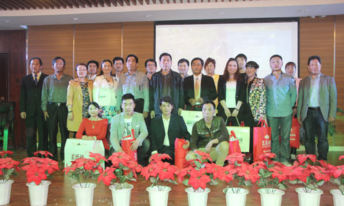 电气部职工贾云鹏演唱的《精忠报国》 荣获一等奖的郭会娟正在激情高歌 来自夏风庆典公司精彩节目《变脸》 职工石俊华演唱的《隐形的翅膀》 来自烧成车间职工余国胜自弹自唱的《站台》 集团领导为获奖人员颁奖并合影留念 |