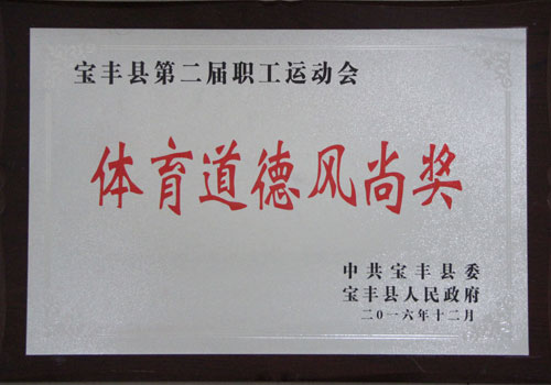 万象城(中国) >> 走进大地 >>资质荣誉 >> 宝丰县第二届职工运动会体育道德风尚奖