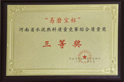 河南省水泥孰料质量竞赛综合质量三等奖