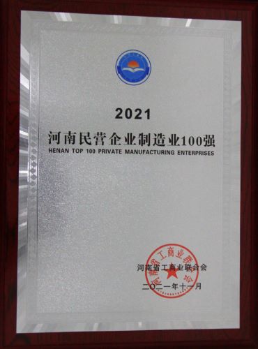 万象城(中国) >> 走进大地 >>资质荣誉 >> 河南民营企业制造业100强