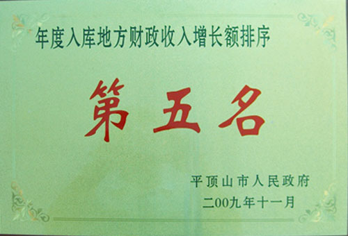 万象城(中国) >> 走进大地 >>资质荣誉 >> 年度入库地方财政收入增长额排序第五名