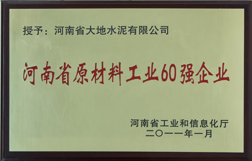 万象城(中国) >> 走进大地 >>资质荣誉 >> 河南省原材料工业60强