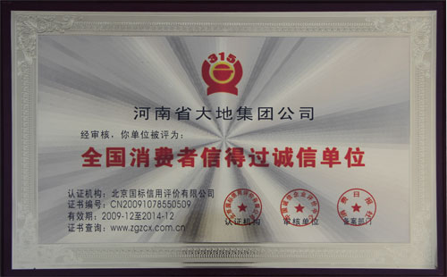 万象城(中国) >> 走进大地 >>资质荣誉 >> 全国消费者信得过诚信单位