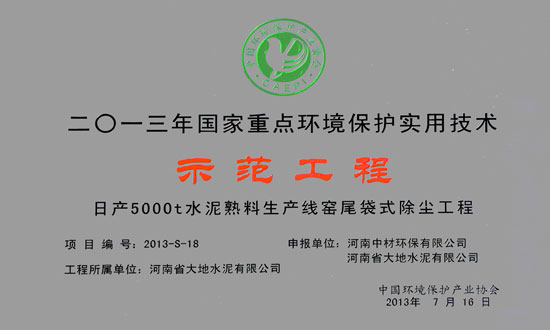 万象城(中国) >> 走进大地 >>资质荣誉 >> 2013年国家重点环境保护实用技术