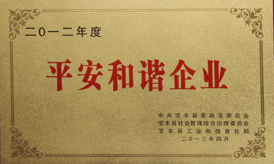 万象城(中国) >> 走进大地 >>资质荣誉 >> 2012年度平安和谐企业
